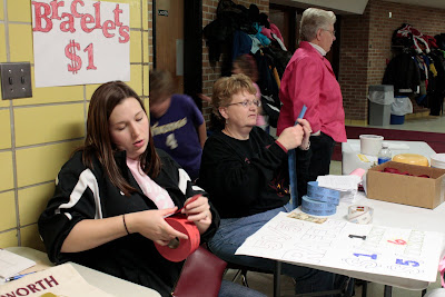 The donations were used for raffles, a silent auction, and prizes for basketball bingo. Yes, I said basketball bingo. Probably the most fun you can have at a basketball game. Instead of numbers to cross off, different scenarios take their place. It isn't often you hear both sides of a crowd cheer for a charge call!